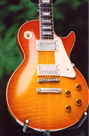 | After years of searching, a friend told me of a guitar in a tiny shop that I should have a look at. I brought my own Les Paul to pitch it against, and the sound was spot on! Much money changed hands and I drove it home like an excited sixteen year old. After a mild panic when the bridge pickup seemed faulty, I replaced it with a pickup from a pair of 40-year-old Gibson humbuckers I had sitting around. I am completely delighted with this new "brother" to my Custom. I can't put it down. I keep thinking, "if only I could have had a '59 Standard at sixteen!" We can't change the past but the important thing is that now I have the blues sound I always wanted! |